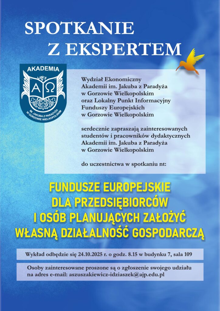 Wydział Ekonomiczny Akademii im. Jakuba z Paradyża w Gorzowie Wielkopolskim oraz Lokalny Punkt Informacyjny Funduszy Europejskich w Gorzowie Wielkopolskim