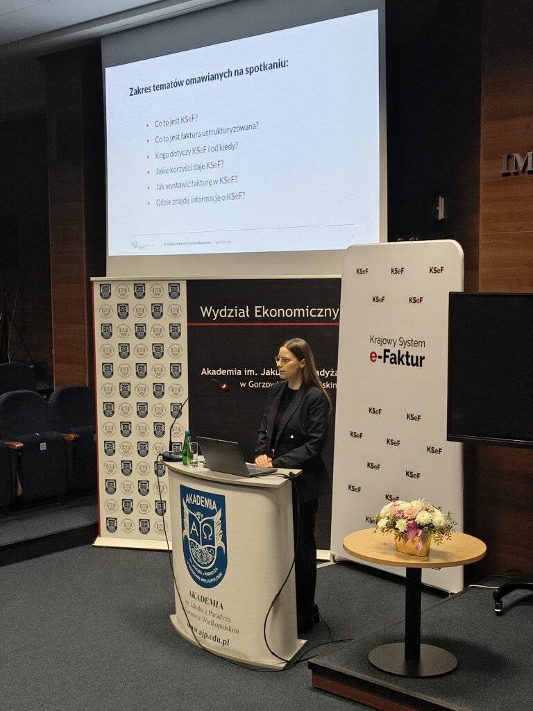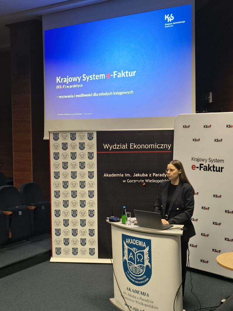 14 listopada 2025 roku na Wydziale Ekonomicznym Akademii im. Jakuba z Paradyża w Gorzowie Wielkopolskim odbył się wykład w ramach Międzynarodowego Dnia Księgowości, Kluczowym pt. „Krajowy system e-faktur (KSeF) w praktyce – wyzwania i możliwości dla młodych księgowych”.