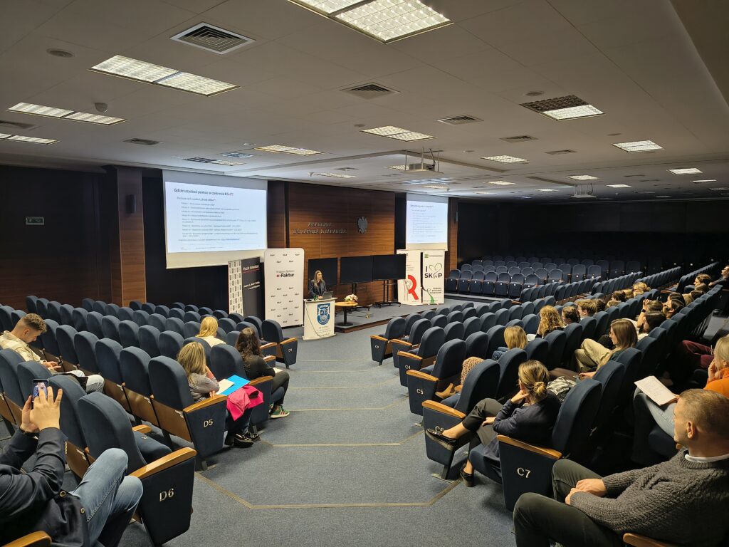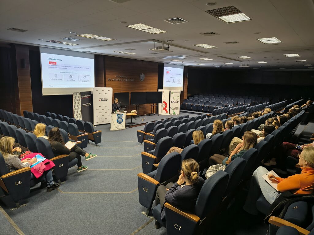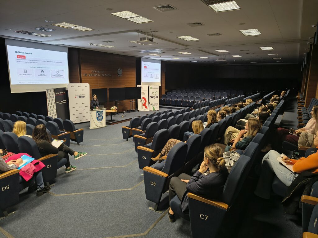 Spotkanie cieszyło się dużym zainteresowaniem studentów oraz kadry Wydziału Ekonomicznego, a także uczniów Zespołu Szkół Ekonomicznych w Gorzowie Wielkopolskim oraz praktyków z lokalnego środowiska księgowego. Głównym celem było przybliżenie słuchaczom zasad funkcjonowania Krajowego Systemu e-Faktur (KSeF), którego obowiązkowe wprowadzenie stanowi obecnie jedno z największych wyzwań dla polskiej gospodarki i zawodu księgowego.