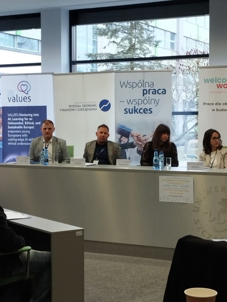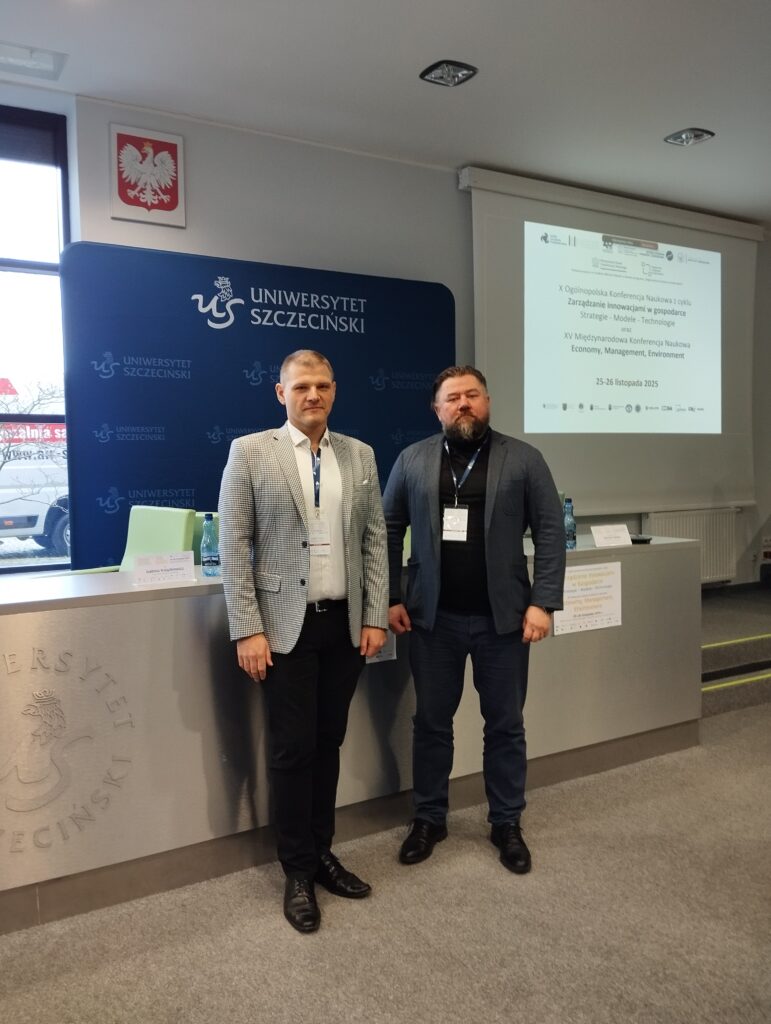 W dniu 25 i 26 listopada 2025 reprezentacja Wydziału Ekonomicznego w składzie dr Marcin Cywiński oraz mgr Grzegorz Jurec uczestniczyła w X Ogólnopolskiej Konferencji Naukowej z cyklu Zarządzanie innowacjami w gospodarce – „Zarządzanie innowacjami w gospodarce. Strategie – Modele – Technologie” oraz XV Międzynarodowej Konferencji Naukowej „Economy, Management, Environment” w Szczecinie. Spotkanie na Uniwersytecie Szczecińskim umożliwiło wymianę poglądów, doświadczeń i wyników prowadzonych badań naukowych, a dodatkowo wzbogaciło uczestników o umiejętności wykorzystania narzędzi sztucznej inteligencji w prowadzeniu działalności naukowo-badawczej.