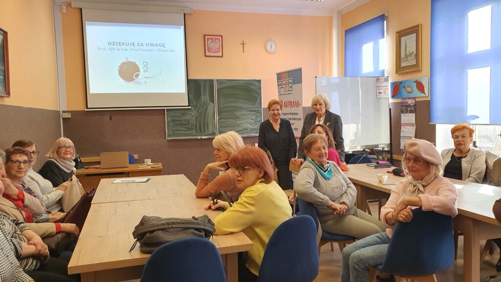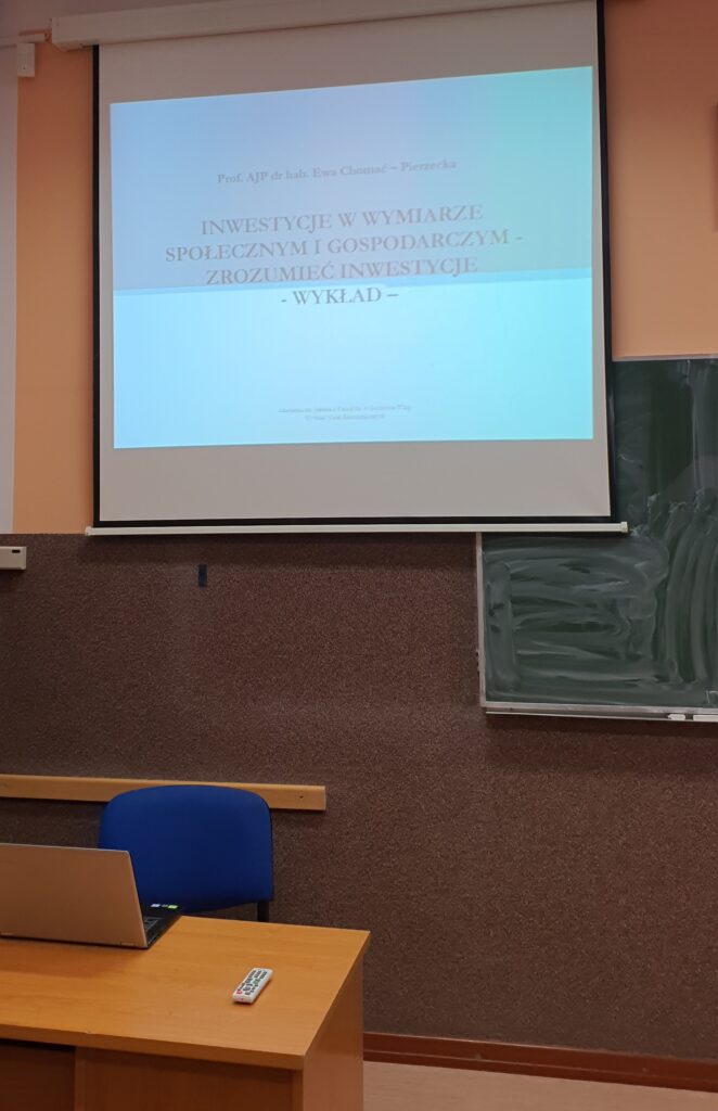 W dniu 8 grudnia 2025 r. odbył się wykład pt.„INWESTYCJE W WYMIARZE SPOŁECZNYM I GOSPODARCZYM – ZROZUMIEĆ INWESTYCJE” dla słuchaczy Uniwersytetu Trzeciego Wieku „Piękne Życie” w Dębnie. Wykład poprowadziła prof. AJP dr hab. Ewa Chomać-Pierzecka. Celem wykładu było zaprezentowanie ogólnych informacji na temat zagadnień związanych z inwestycjami i procesem inwestycyjnym. Wykład ukierunkowano na doskonalenie wiedzy uczestników wykładu w zakresie potencjału inwestycyjnego w połączeniu z aspektem ryzyka inwestycyjnego. Wykład w istotnym zakresie przyczynić się ma do wzmocnienia świadomości w zakresie aktualnych możliwości i wyzwań inwestycyjnych, ze szczególnym uwzględnieniem praktyk zwiększających bezpieczeństwo w tym procesie.