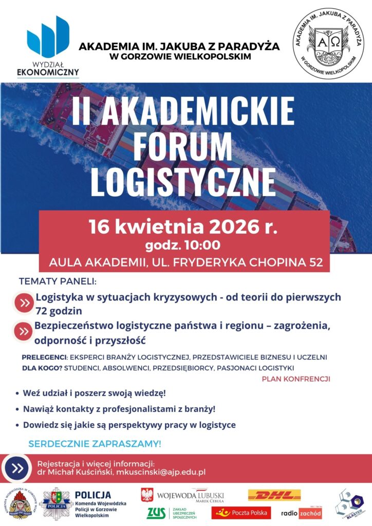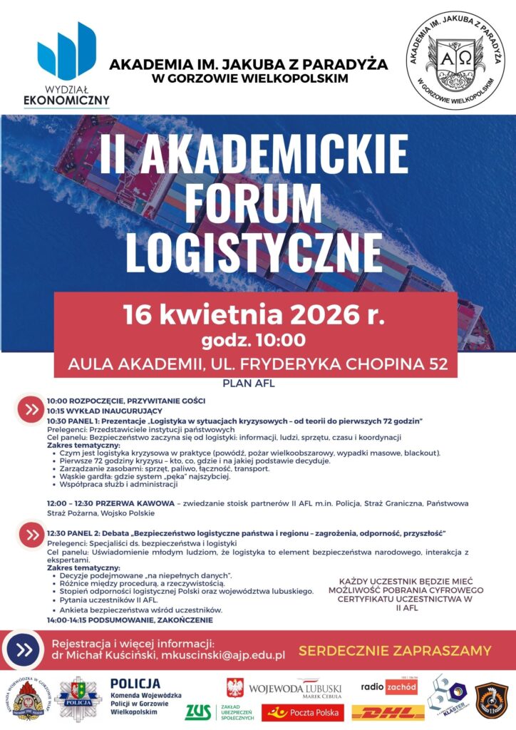 - Aktualna tematyka: Akademickie Forum Logistyczne skupia się na zagadnieniach niezwykle istotnych dla rozwoju regionu gorzowskiego. Wyjaśnia uczestnikom praktyczną stronę logistyki.